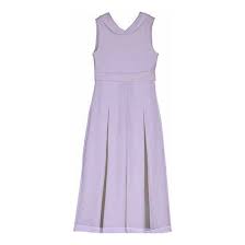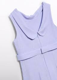 Mono en tejido bambula con un toque de lurex, con cuello y cinturón, en color lila.