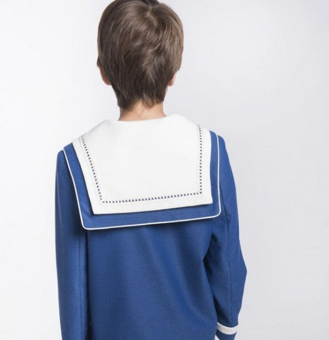 Pantalón en color azulon, forrado y con gomas en los costados.